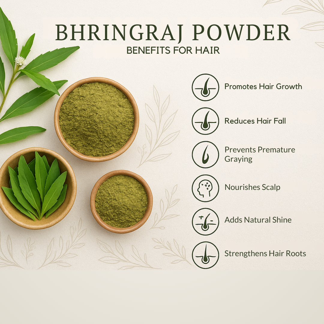 One of the main benefits of Bhringraj Maka powder is its ability to promote healthy hair growth. The nutrients in Bhringraj Maka powder are believed to stimulate the hair follicles, helping to encourage new hair growth. In addition, Bhringraj Maka powder can help prevent hair loss by strengthening the hair shaft and reducing breakage. Bhringraj Maka powder is also thought to improve circulation to the scalp, which may further promote hair growth.
